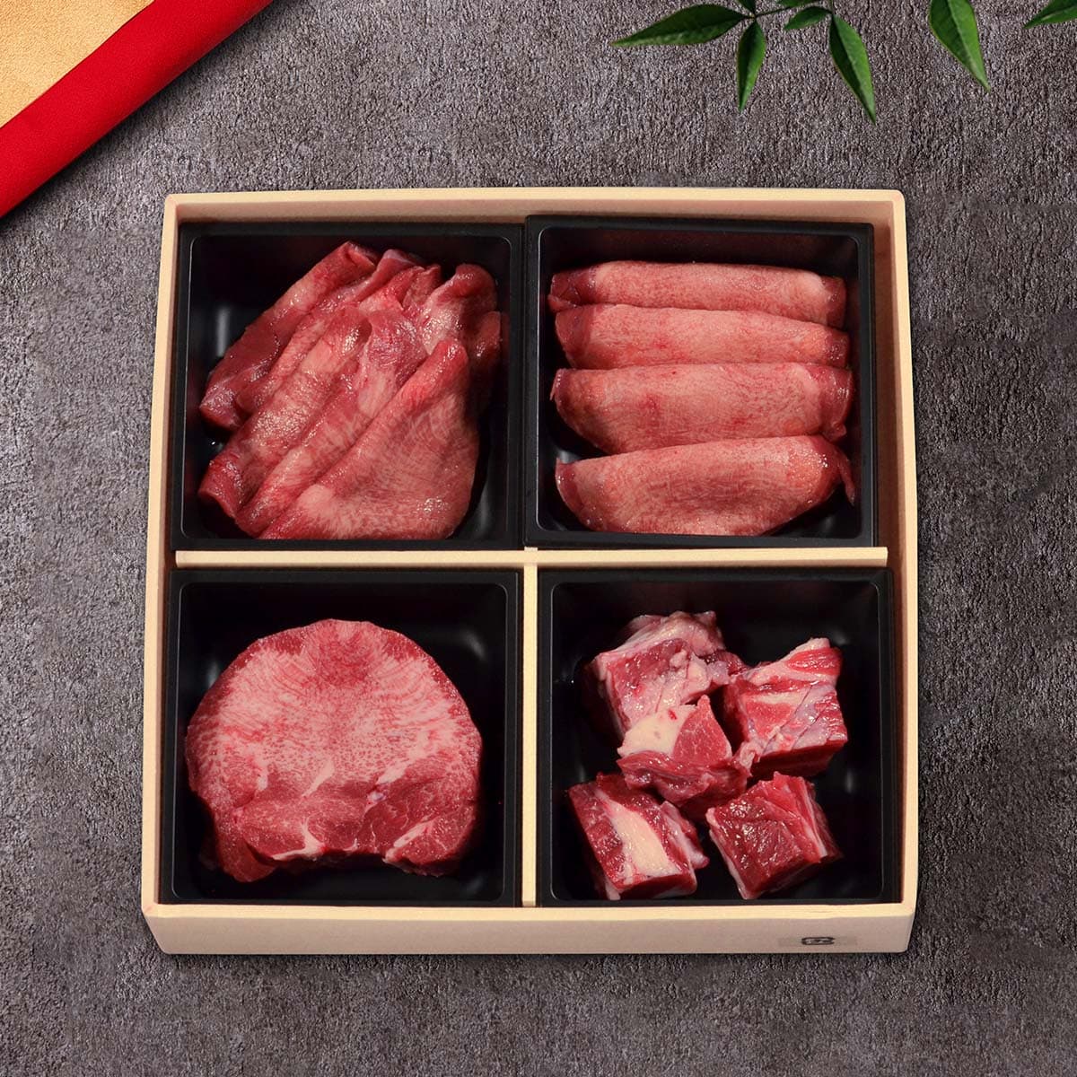 厳選されたアメリカ産の牛タンを4つ切りにしたギフト用セット。